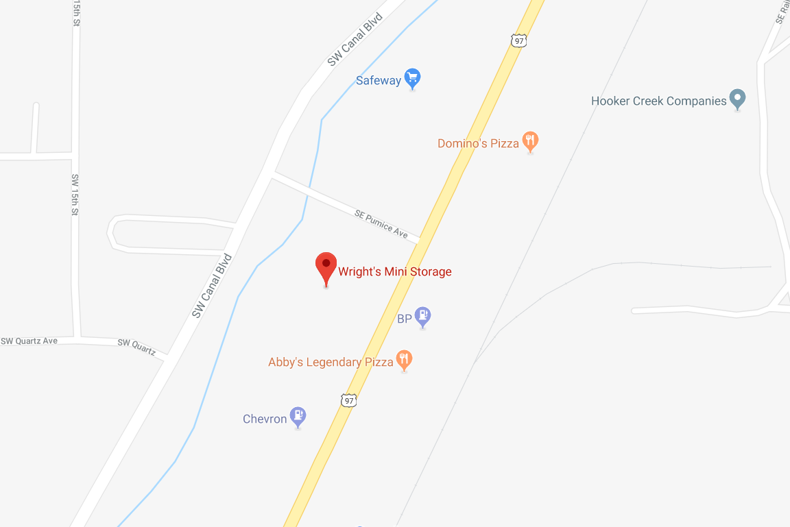 Wright Mini Storage is located at the corner of Highway 97 and Pumice next to Safeway.